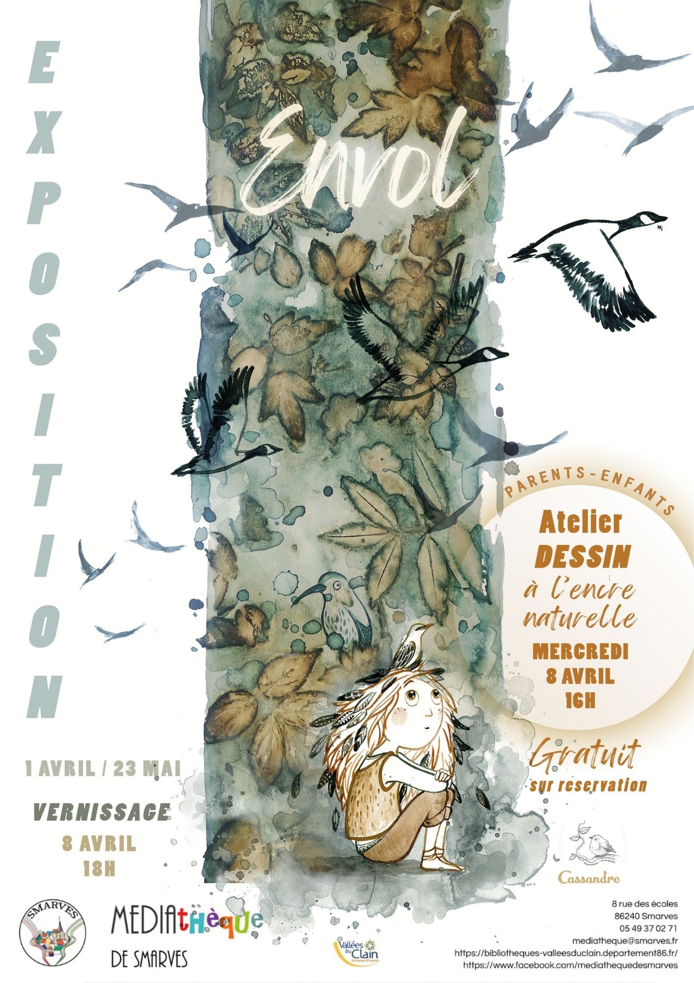 Exposition Envol par Cassandre. Visible aux horaires d’ouverture de la médiathèque.